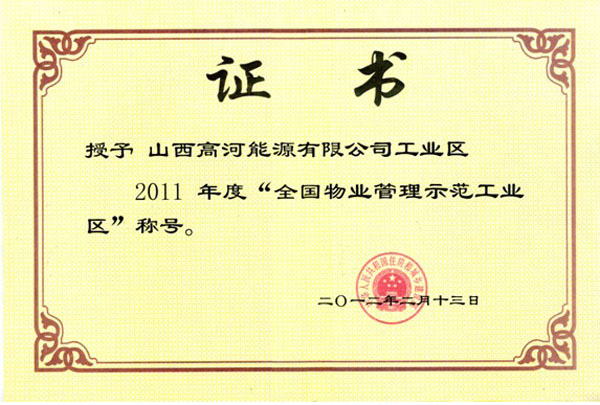 高河煤礦項目獲“全國物業(yè)管理示范工業(yè)區(qū)”稱號