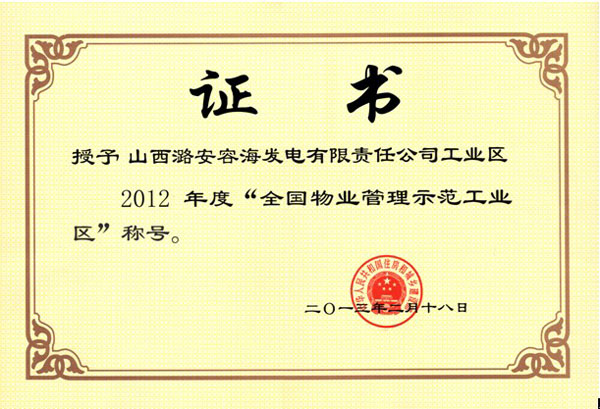容海發(fā)電項目獲“全國物業(yè)管理示范工業(yè)區(qū)”稱號